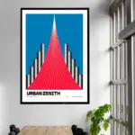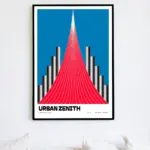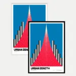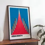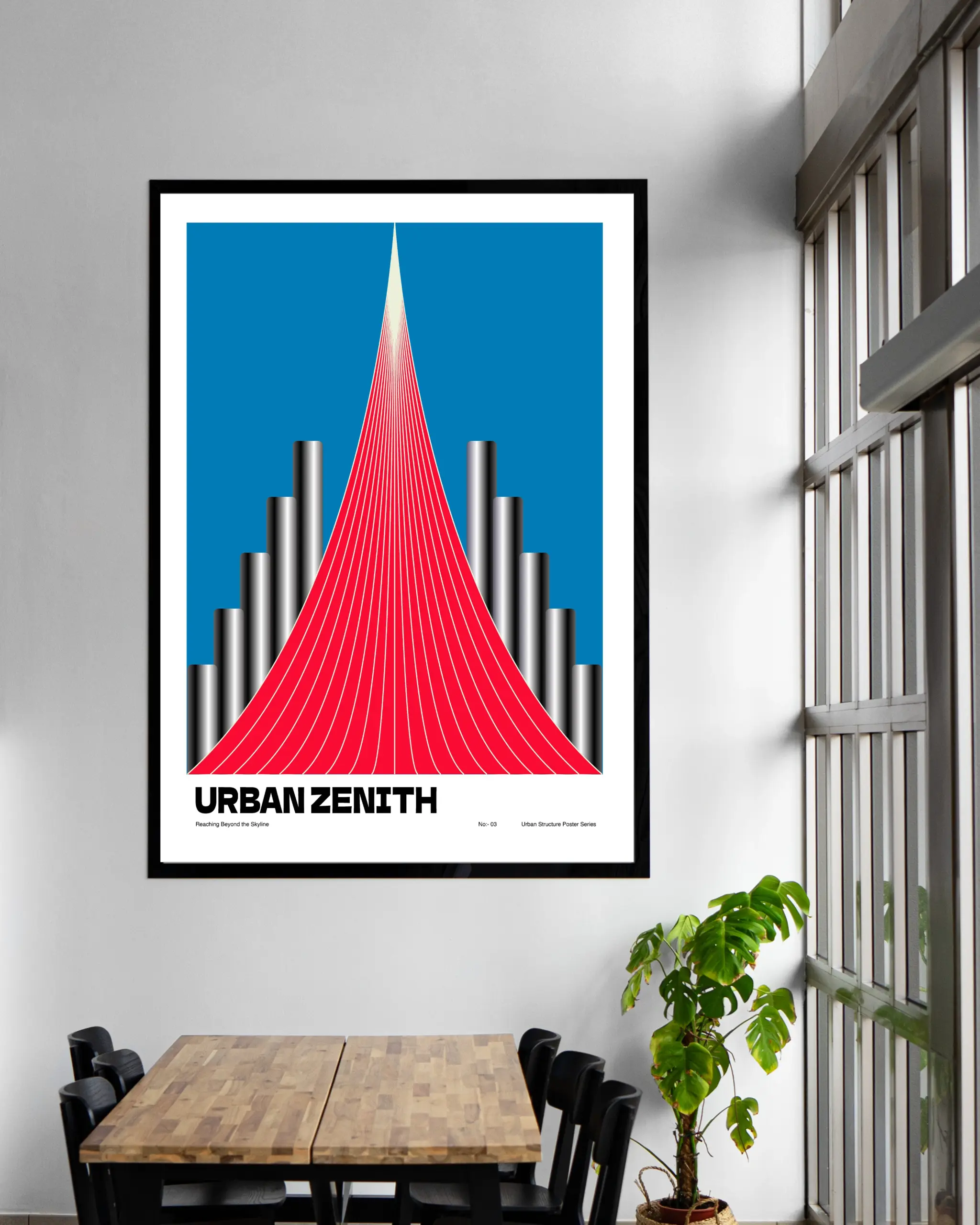 The vivid blue background creates a strong contrast, making the design feel alive and dynamic. Clean lines and simple forms maintain a modern and balanced composition. This piece captures the energy of city life while staying minimal and striking. It’s a statement artwork that reflects the spirit of urban progress, perfect for anyone who loves architecture, design, and contemporary cityscapes.