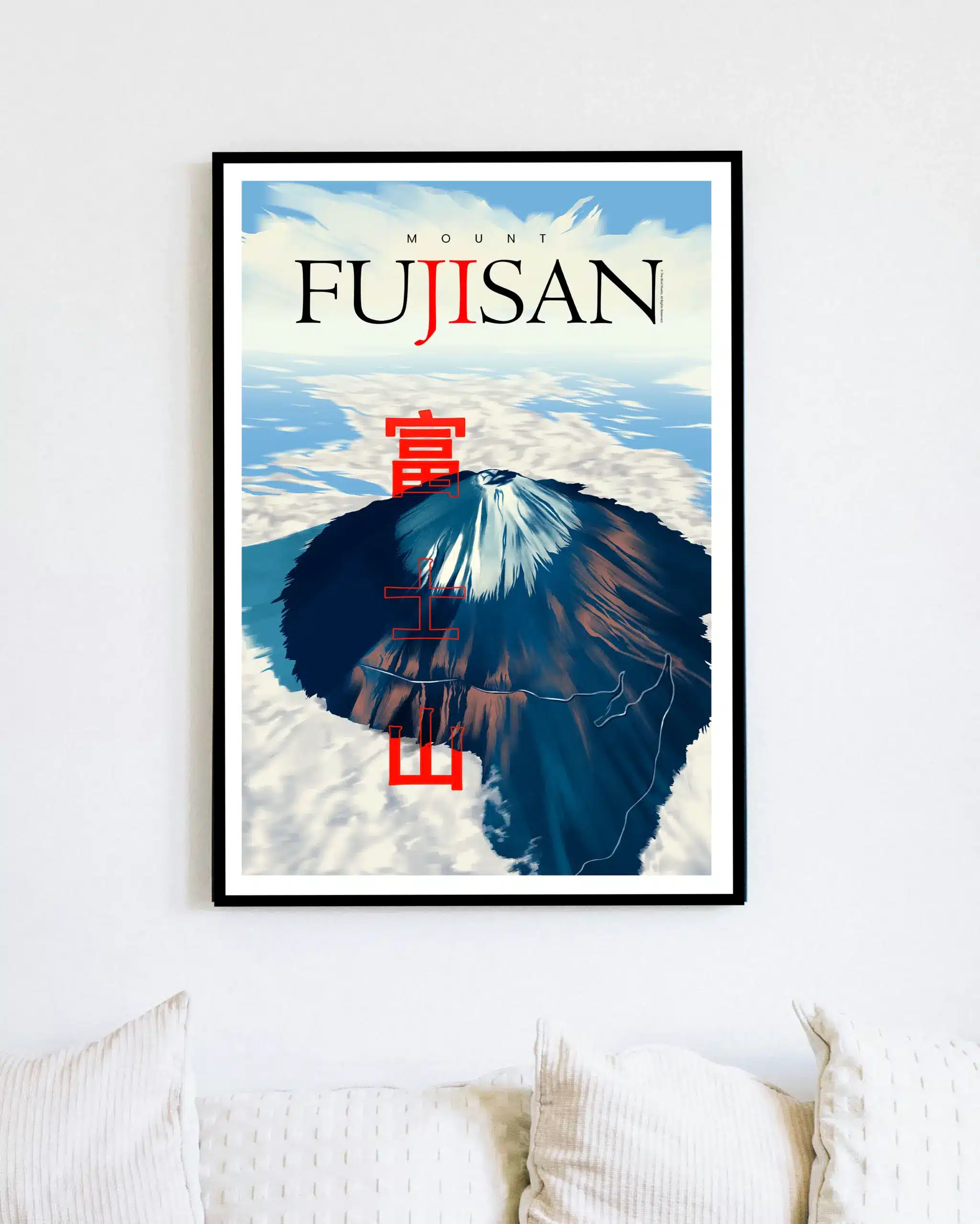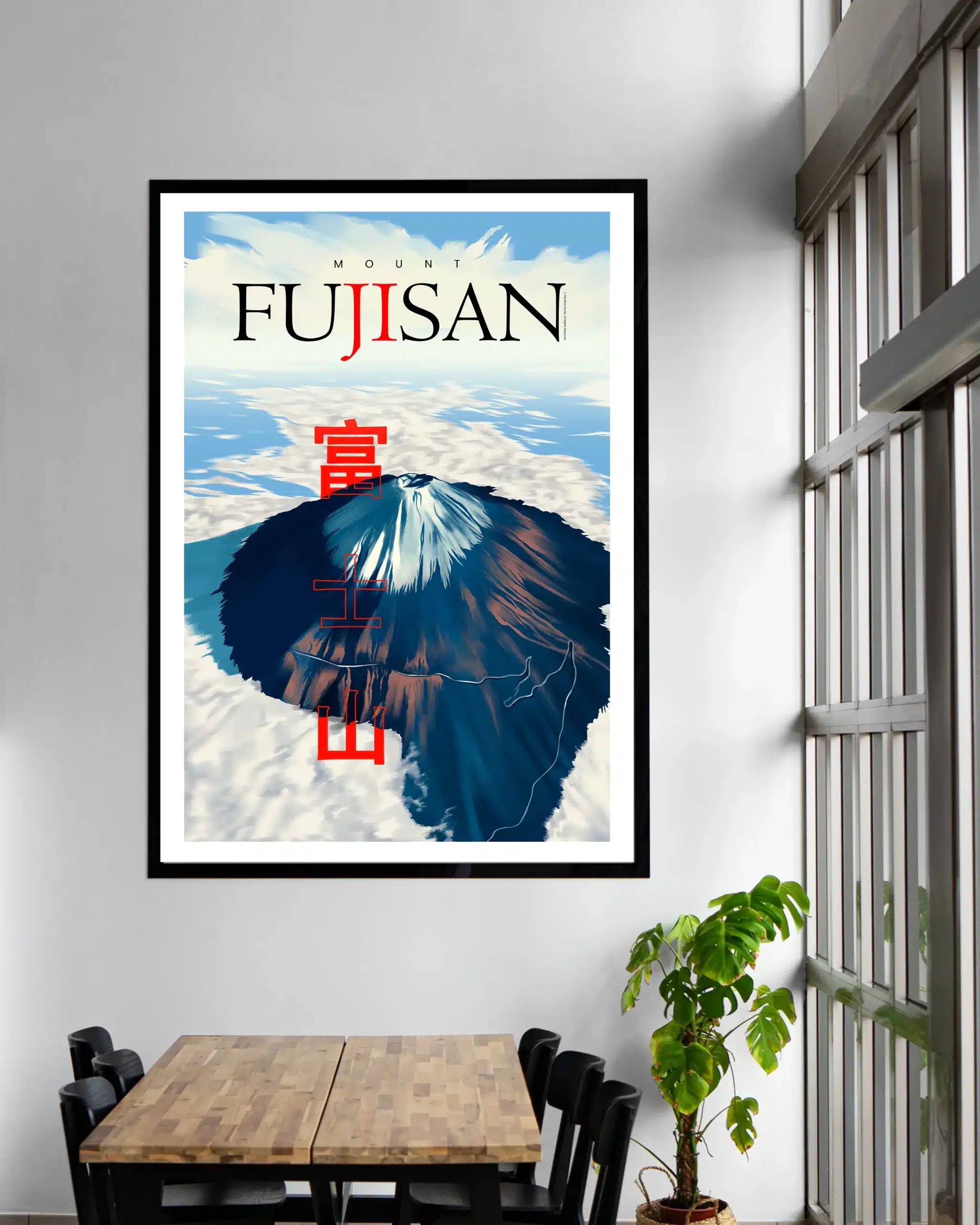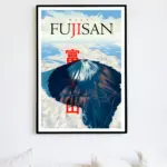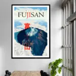 Bold Japanese kanji characters stand in vivid red across the composition, adding cultural authenticity and balance to the design. This piece blends nature and tradition into a striking visual statement. Perfect for lovers of travel, Japanese culture, and scenic landscapes, it brings the timeless beauty of Mount Fuji indoors.