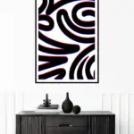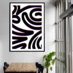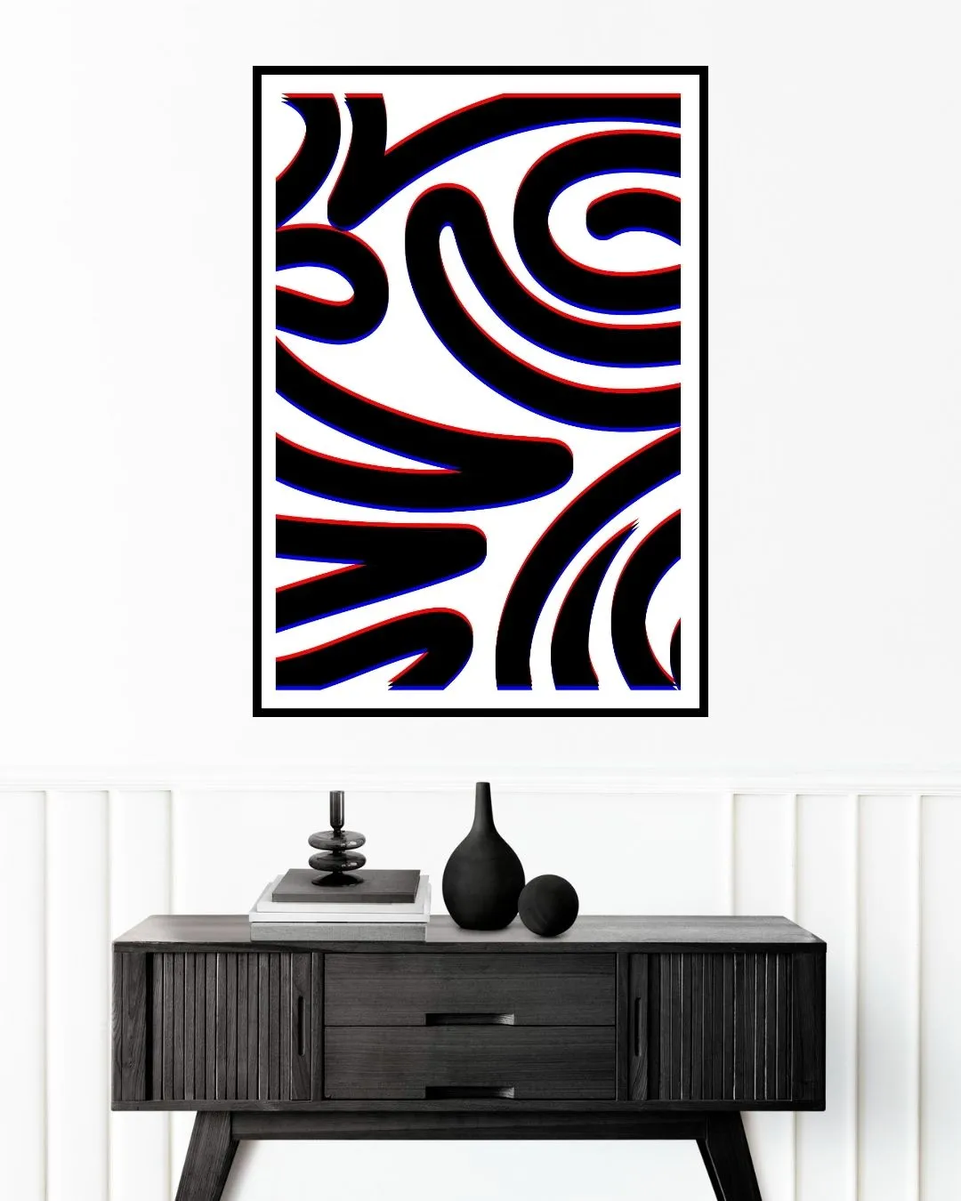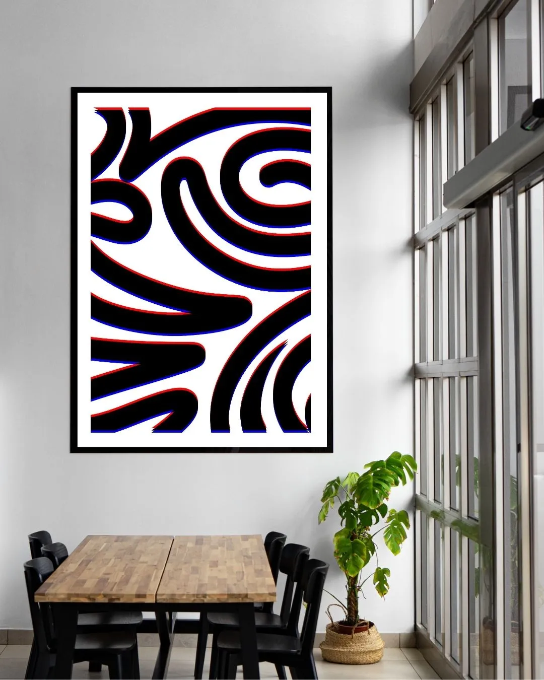The fluid, wave-like forms create rhythm and movement, making the design both modern and energetic. Its minimalist yet vibrant style is perfect for contemporary homes, studios, or creative workspaces. The “Curves” poster blends simplicity with bold visual impact, adding depth, motion, and a touch of chromatic artistry to any wall.