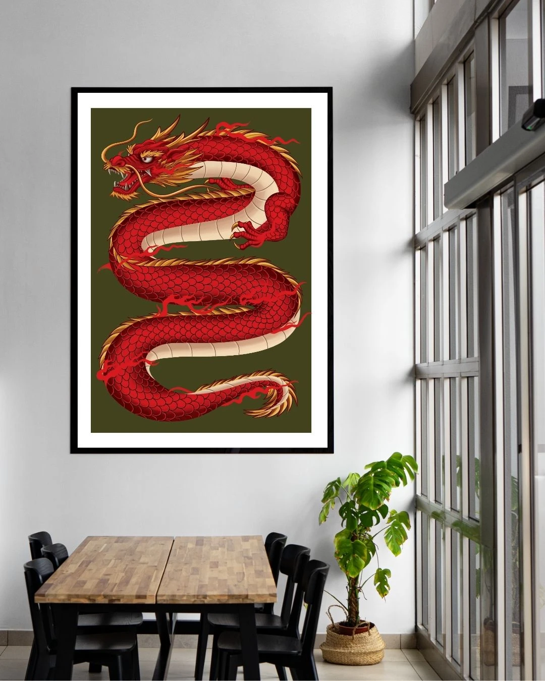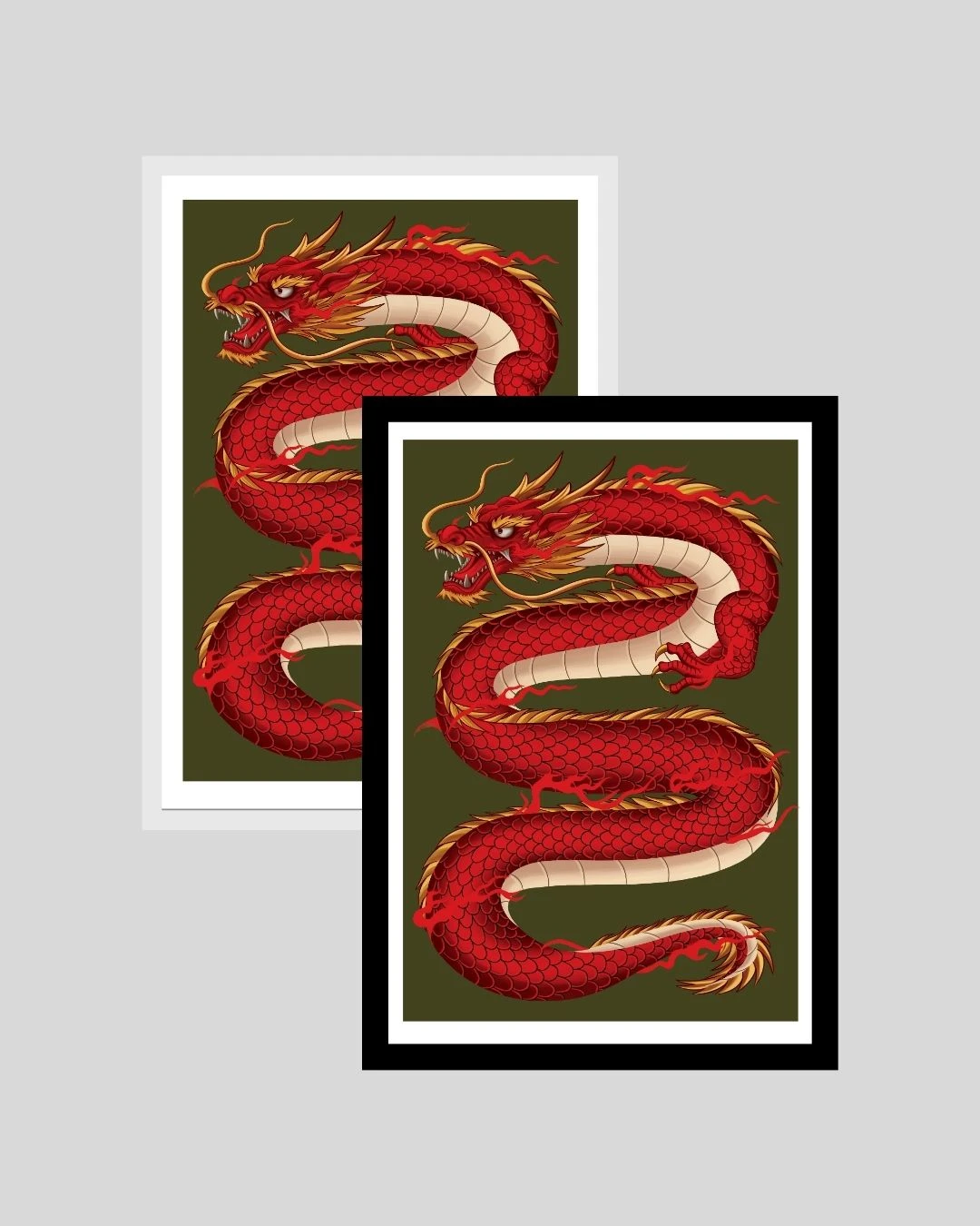 This red Japanese dragon poster instantly commands attention. I designed it with intricate scales, golden flames, and sharp detailing to capture the fierce yet graceful essence of traditional Japanese art. The deep red tones symbolize strength and passion, making it the perfect statement piece for anyone who appreciates power, culture, and bold design.